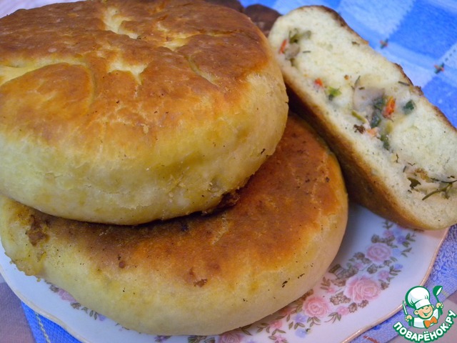 Сытные, вкусные лепешки с ароматной начинкой, пикантность которой придают маринованные огурцы.