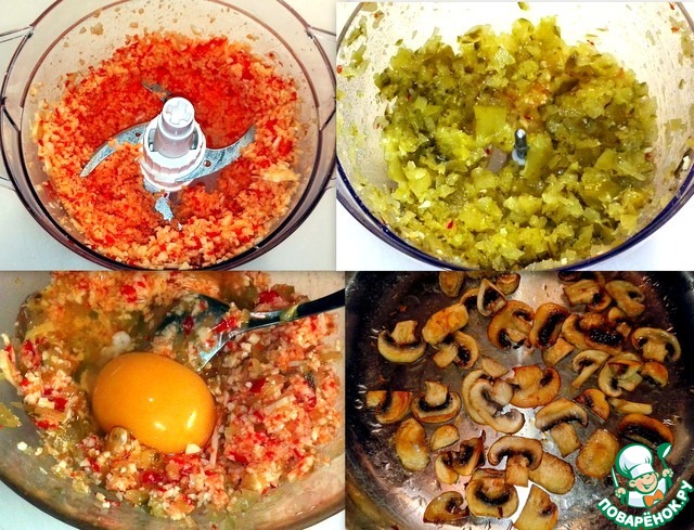 измельчённую начинку и шампиньоны.