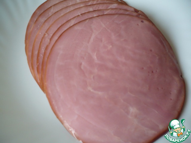 Остается лишь собрать наши закусочные рулетики. Я взяла нарезанные кружочки копчено-вареной говядины.