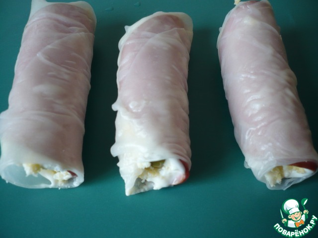 Рецепт «Закуска-рулеты с маринованными огурцами»: