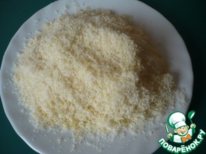 Теперь на мелкой терке натереть твердый сыр.