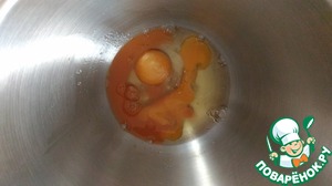 Разбить яйцо и добавить соль и морковный сок, перемешать.