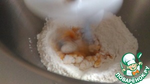 Добавить муку в нашу яично-морковную массу и все тщательно перемешать, вымесить тесто.