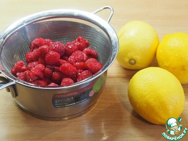 Разморозить малину и хорошенько вымыть лимоны, чтобы отстранить химию, которой брызгают цитрусовые. -