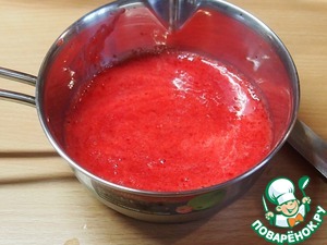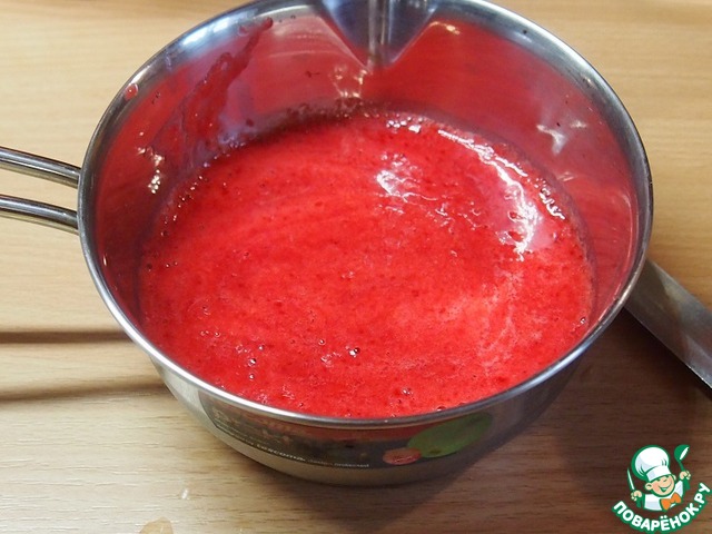 Малину перетереть через сито, чтобы избавиться от мелких косточек.