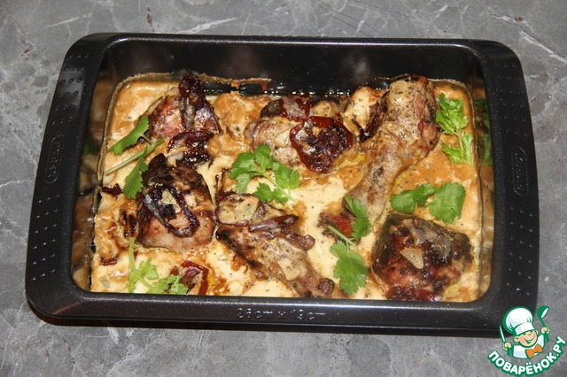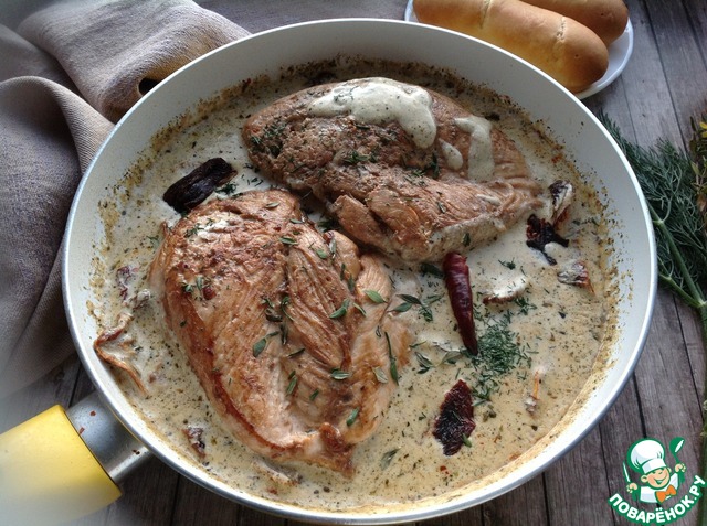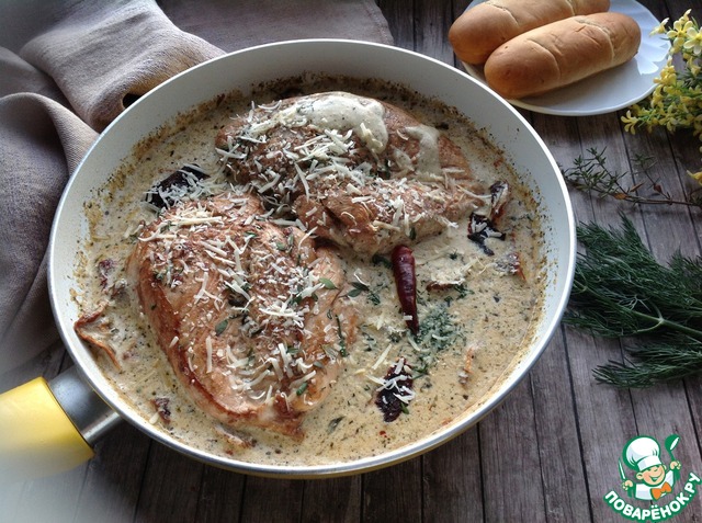 Предлагаю приготовить ещё одно быстрое и лёгкое блюдо - куриные грудки или бедрышки в сливочно-сырном соусе с вялеными томатами и ароматом итальянских трав. Угощайтесь!