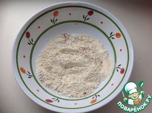 В другую миску добавить муку, специи и перемешать. У меня соломка попалась соленая, поэтому я соль не добавляла.