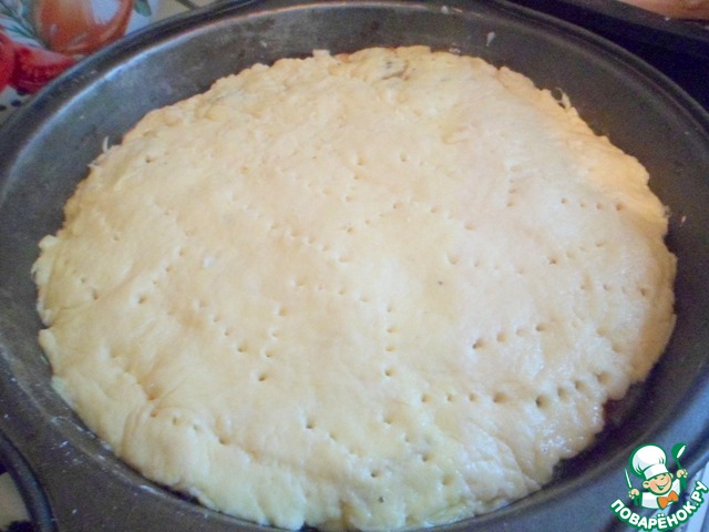 Раскатать, слегка подпыливая мукой, пласт теста, вырезать круг по диаметру формы для запекания.