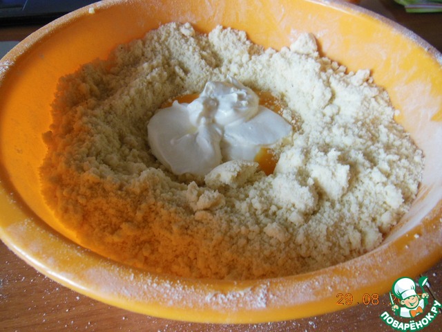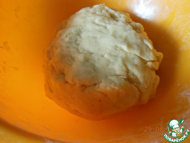 Замесить тесто. Готовое тесто завернуть в целлофан и положить минут на 30 в холодильник.