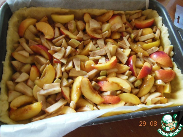 Рецепт «Пирог с яблоками, нектаринами и пудингом»: