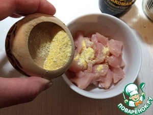 Вскипятить 1 литр воды и отправить туда кусочки курицы вместе с маринадом.
