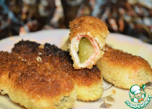 Как же шикарно хрустит эта панировка! Более хрустящей я ещё не пробовала. А когда под такой панировкой прячутся огурчик с крабовой палочкой, то получается не просто песня, а целая опера!