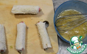 Я уже задумала приготовить такие закусочные рулетики в обычной магазинной панировке. Однако, увидела шикарную панировку от поварёнка Ирочки (Ирушенька) и решила сначала приготовить панировку по её рецепту, а потом уж свою закуску. В итоге я не знала, чему радоваться больше: рулетику или панировке!