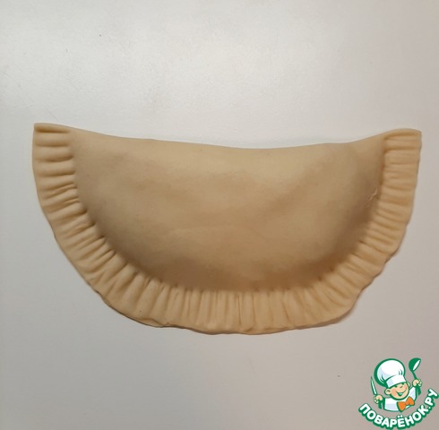 Отправляем его на противень, посыпанный мукой. И так с каждым чебуреком.