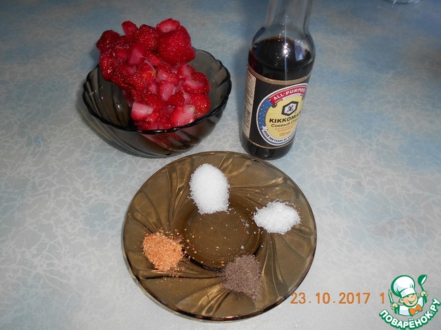 Клубника из заморозки, пробовали с сыром. К мясу в перспективе.