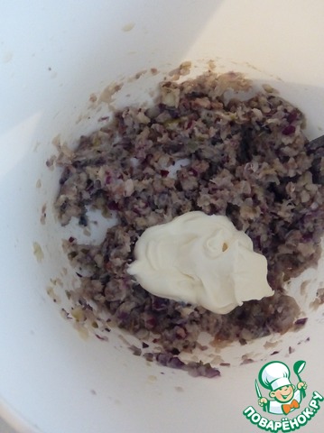 Затем вводим сметану, майонез и лимонный сок. Все тщательно перемешиваем.