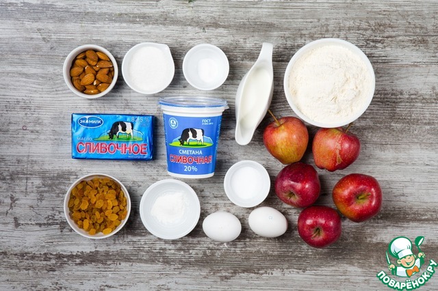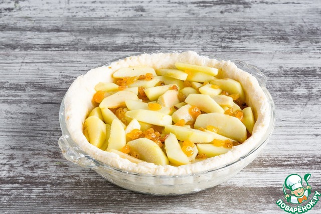 Сода - это уже разрыхлитель теста. Готовый разрыхлитель - сода+лимонная кислота+крахмал, т.е пекарский порошок. И зачем эти заморочки с разрыхлителями и содой.... А в общем - хороший осенний закрытый пирог с яблоками, но не тарт....