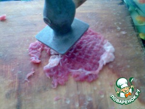 В теплую воду положить соль, измельченный чеснок, зиру, приправу, перемешать и положить отбивные на 15 мин.
