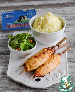 Подавайте кебабы с пюре и салатом из свежих овощей.