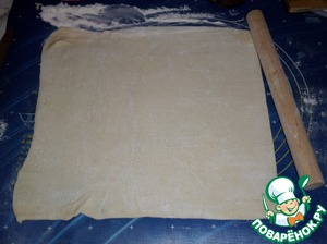 Переносим на противень. Визуально делим пласт теста вдоль на 3 части. Я сделала разметку.