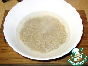 Прошло 15 часов, крупа стала мягкой, существенно увеличилась в размерах. Сливаем воду.