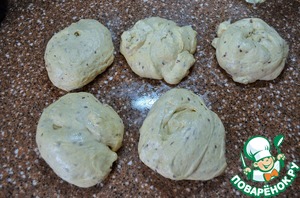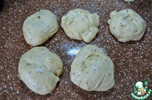 Разделить тесто на 5 равных частей.