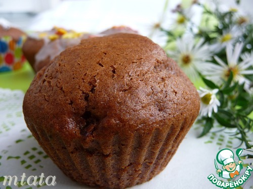 У меня столовая ложка какао дала не такой насыщенный цвет, как у Татьяны, решила кексам шоколода добавить.