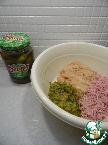 Огурцы и ветчину натереть на крупной терке, картофель - на средней.