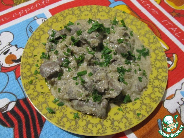 Ингредиенты для «Нежная куриная печень со сметаной»: