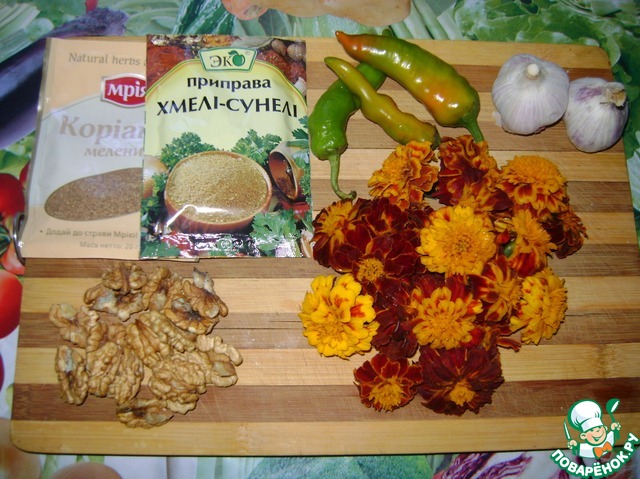 Ингредиенты для «Сырая аджика с бархатцами»: