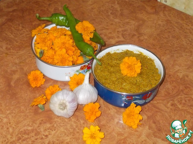 Рецепт «Сырая аджика с бархатцами»: