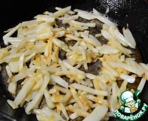Топинамбур нарезаем мелкой соломкой, обжариваем на растительном масле.