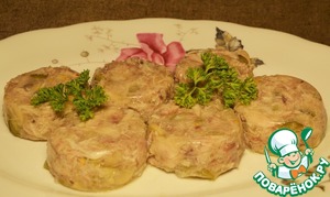 Из форм не очень-то хотел выходить холодец, так я его феном выгнала. После кратковременного прогрева формы холодец легко выскакивает, только успевай ловить. ))
