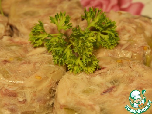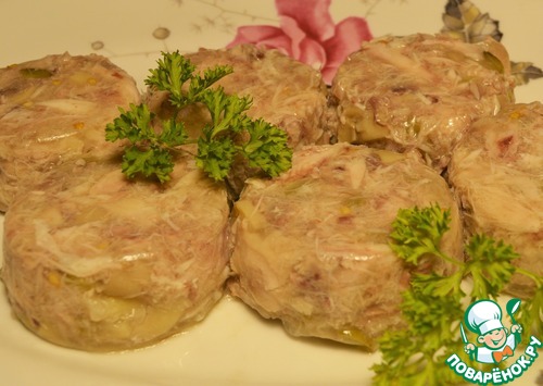 Холодец можно остудить в одной большой форме, а можно и в порционных. У меня получилось 6 порционных холодечков...