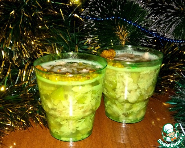 Думаете, куриные крылья можно только запекать или жарить? Вовсе нет. Из них можно сварить замечательный холодец. А маринованные огурцы и шампиньоны придадут холодцу пикантность. Угощайтесь!