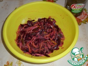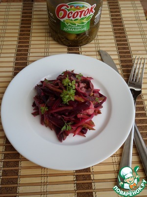 Вот все тоже самое делаю, только вместо желудков селедку кладу и лук мариную))) очень ходовой салатик у нас в семье! А вообще свеколка и маринованные огурчики братья на век!!