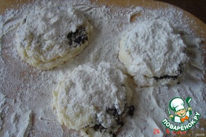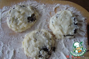 Просеиваем на подложку муку, на муку выкладываем столовой ложкой тесто и формируем лепёшечку :)