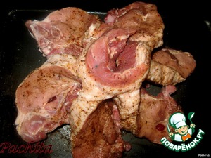 Натереть солью, перцем и корицей. Оставить пропитываться на 15-20 минут.