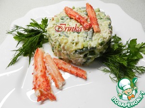 Затем снимаем кольцо, украшаем зеленью и крабовыми лапками.