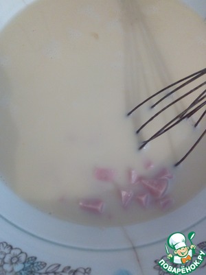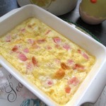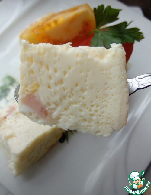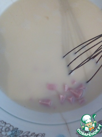 Мелким кубиком режем ветчину, добавляем к яично -молочной смеси.
