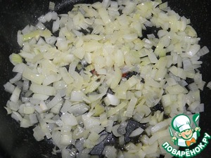 В глубокой сковороде (сотейнике) растапливаем сливочное масло, лук мелко режем