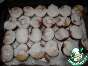 Сверху на сливы высыпаем сахар, между сливами кладём палочки корицы (это не обязательно).