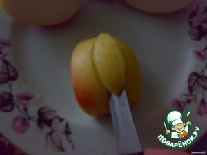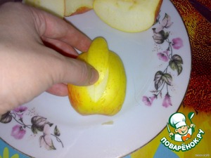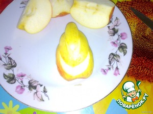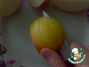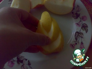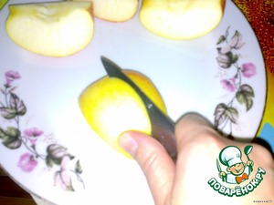Моем яблоко и разрезаем на 4 части, вырезаем сердцевину.