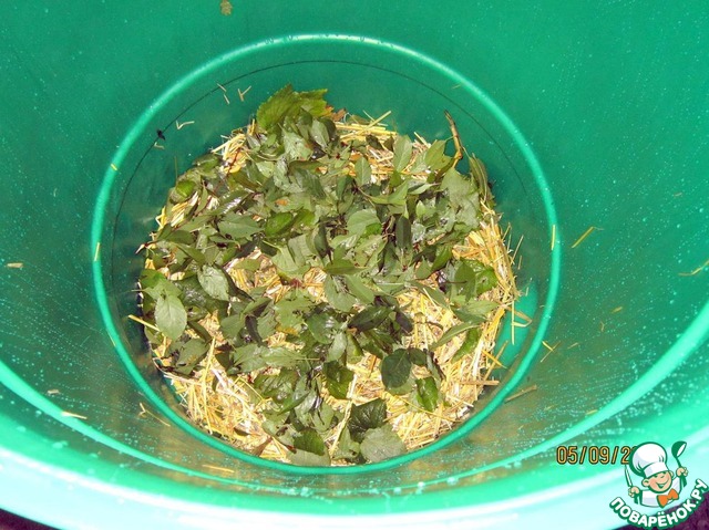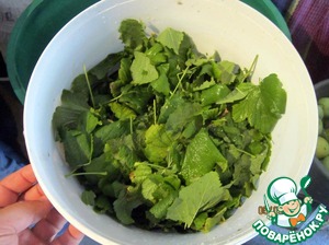 Сверху размещаем немного листьев смородины и вишни.