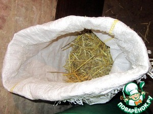 Выстилаем соломой дно бочки.