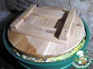 Ставим круг и груз и заливаем тузлуком до верху.
