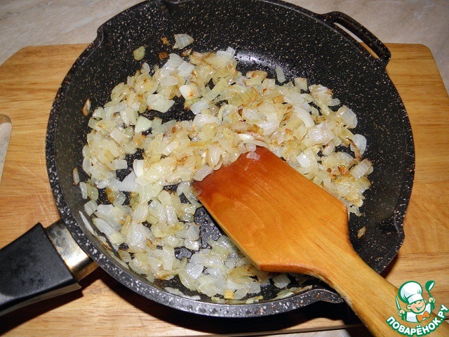 • Пока варится картофель, в сковороде на среднем огне разогреваем 2 ст. л. растительного масла. Кладем лук и жарим, периодически помешивая, до золотого цвета Это будет выглядеть вот так приблизительно