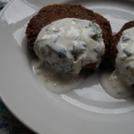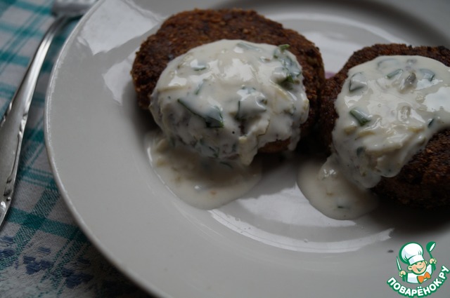 Все готово! Подавать биточки горячими или холодными, полив их соусом.