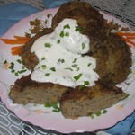 [+4]Как и у многих возникли проблемы при жарке. Первую партию смогла перевернуть и положить на тарелку лишь при помощи двух лопаток.поэтому в оставшийся фарш я добавила пару ложек муки.Это немного спасло ситуацию.