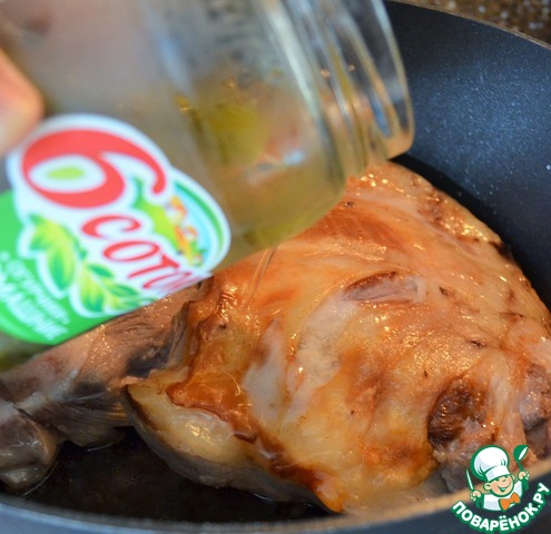 обжарить в нем ногу до красивого румянца, с обеих сторон. -
